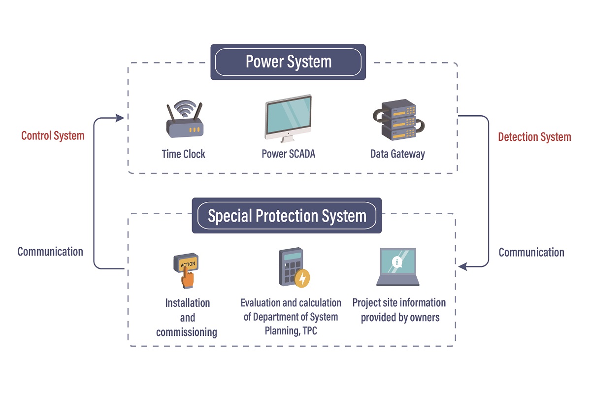 The Special Protection System (SPS), also known as the 50+2 Overload Protection System, consists of two elements: “50”, representing the instantaneous overcurrent relay, and “2”, representing the time-delay relay. The 50+2 function is mandated by Taipower’s System Planning Department, which determines installation requirements for grid-connected operators at substations based on calculated parameters. The system uses real-time overload current levels as the triggering reference, combined with delay settings, to automatically initiate load shedding when both thresholds are reached—thereby reducing system overload and maintaining grid stability.